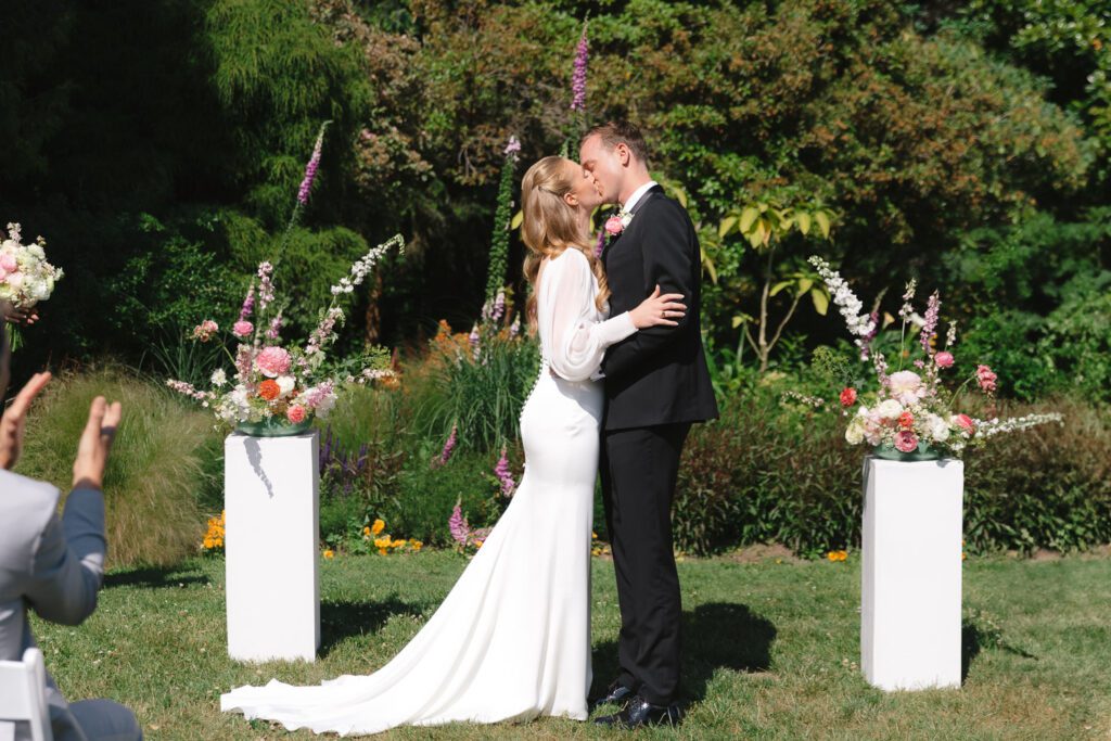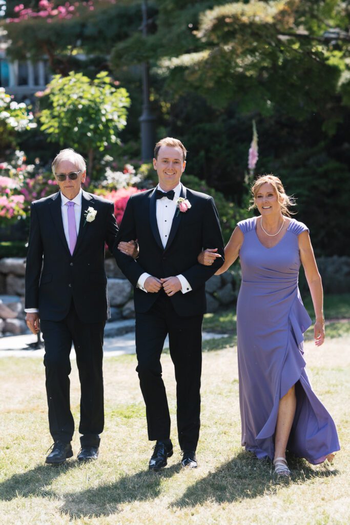 As the sun began to set, the couple stepped away for golden hour portraits around the property. The gardens and ocean views at Cecil Green create a beautiful glow in the evening light, making sunset one of the most magical times of day at the venue.