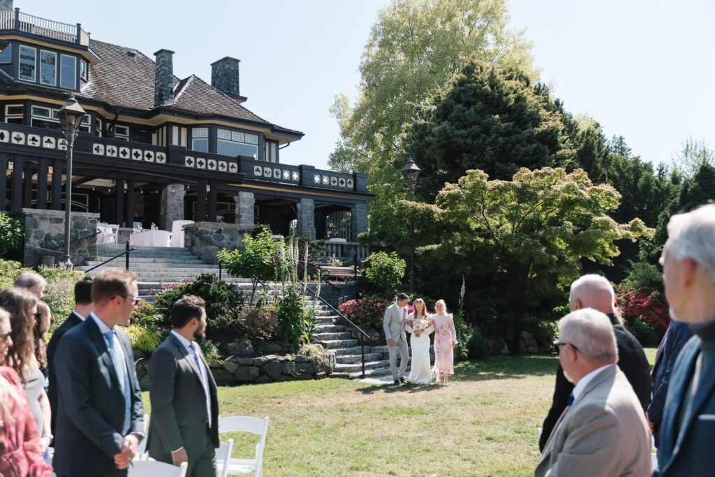 Cecil Green Park House feels like stepping into another era. Built in the early twentieth century as a private estate, the mansion is filled with ornate architectural details that give weddings here a timeless atmosphere. Leaded stained glass windows, carved wood interiors, and grand fireplaces reflect the craftsmanship of the home’s original design. Outside, the surrounding gardens and ocean views create a sense of quiet escape from the city, making it feel more like a historic coastal estate than a typical Vancouver wedding venue.
