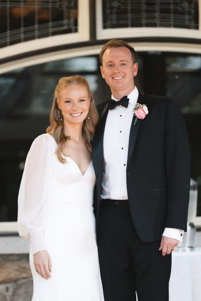 Following the ceremony, guests gathered for a classy cocktail hour on the patio, where conversation and laughter carried easily through the space. Later in the evening, dinner was held outside on the patio as well, creating an elegant but relaxed atmosphere where everyone could enjoy the warm summer air and the beauty of the estate surroundings.